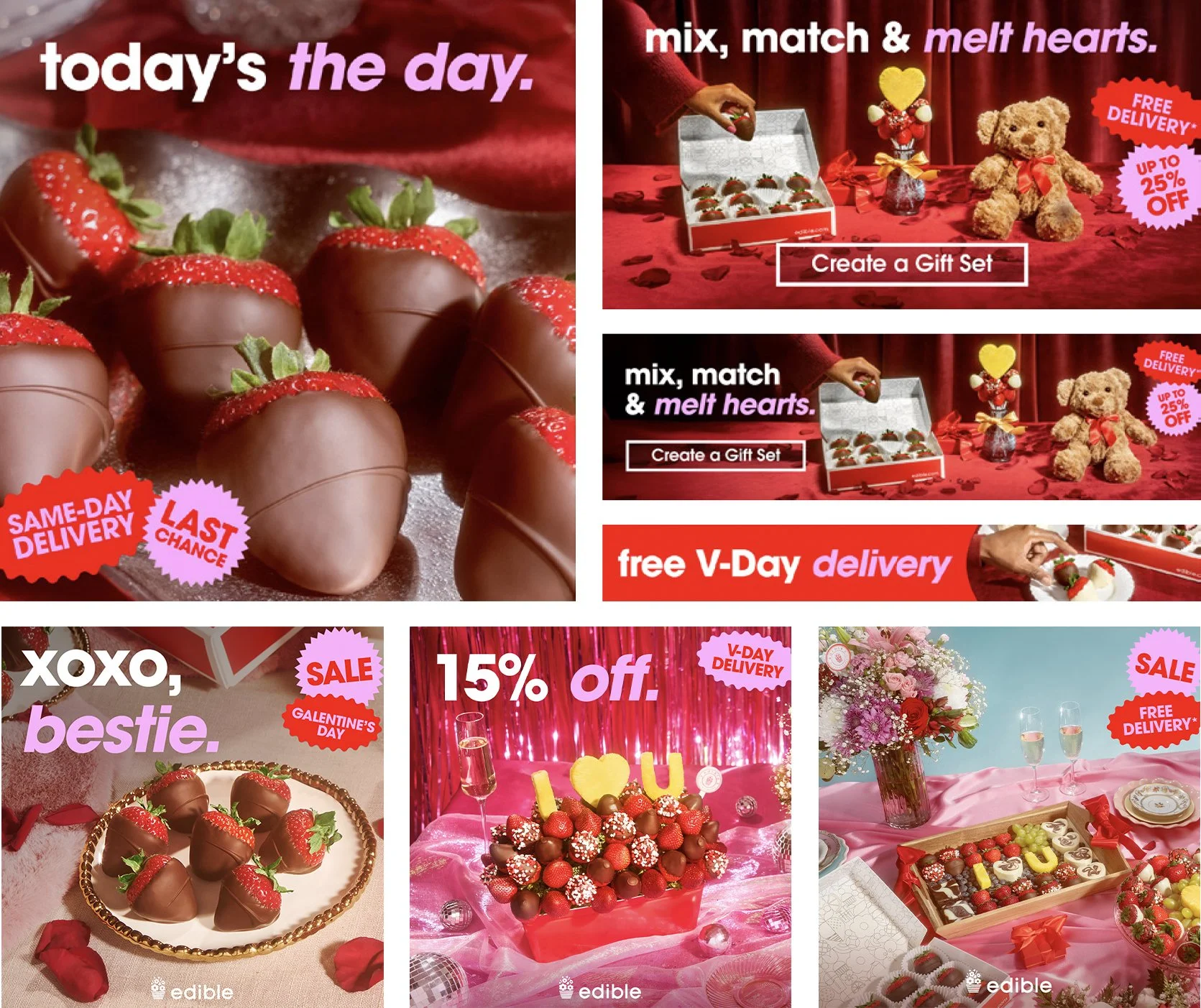 My partner, Nessa, and I created a Valentine’s Day campaign for Edible Arrangements that was equal parts romantic, flirty, and absolutely everywhere. We took that look and feel into what felt like a million emails and social posts designed to push even the most last-minute gifters into action. We partnered with influencers and had our very own Love Advisor to recommend Edible as the effortless solution for anyone trying to get Valentine’s Day just right.